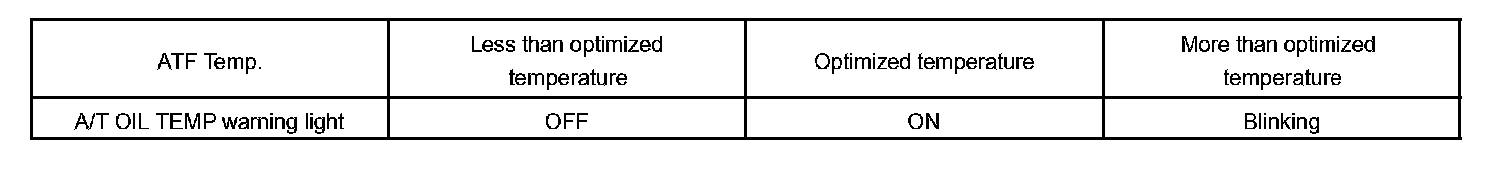 - The A/T OIL TEMP warning light indicates the ATF temperature according to the table.