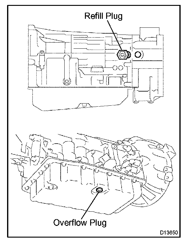 10. Fill ATF to the refill plug until it flows out from the overflow plug.