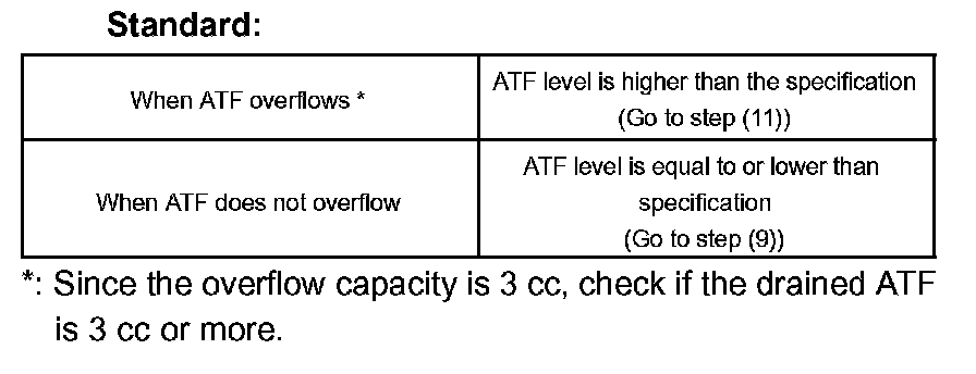 Standard: The A/T OIL TEMP warning light comes on for 2 seconds and then goes off.
