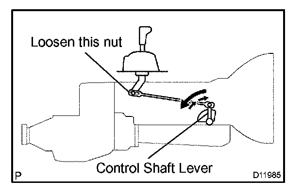 5. While holding the shift lever lightly toward the R position side, tighten the shift lever nut.