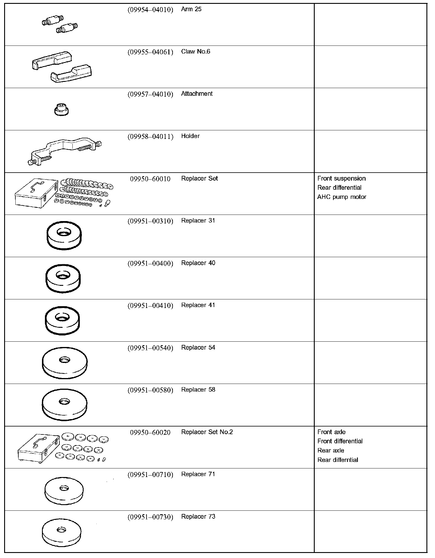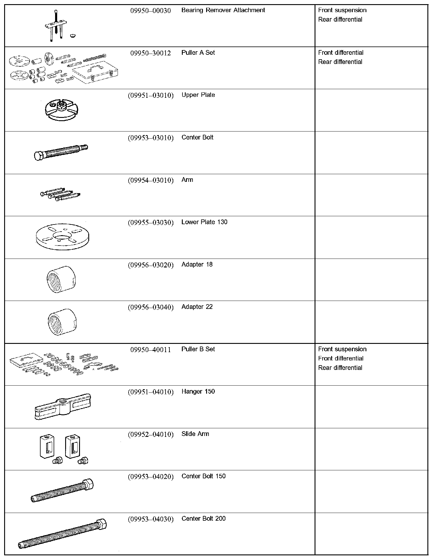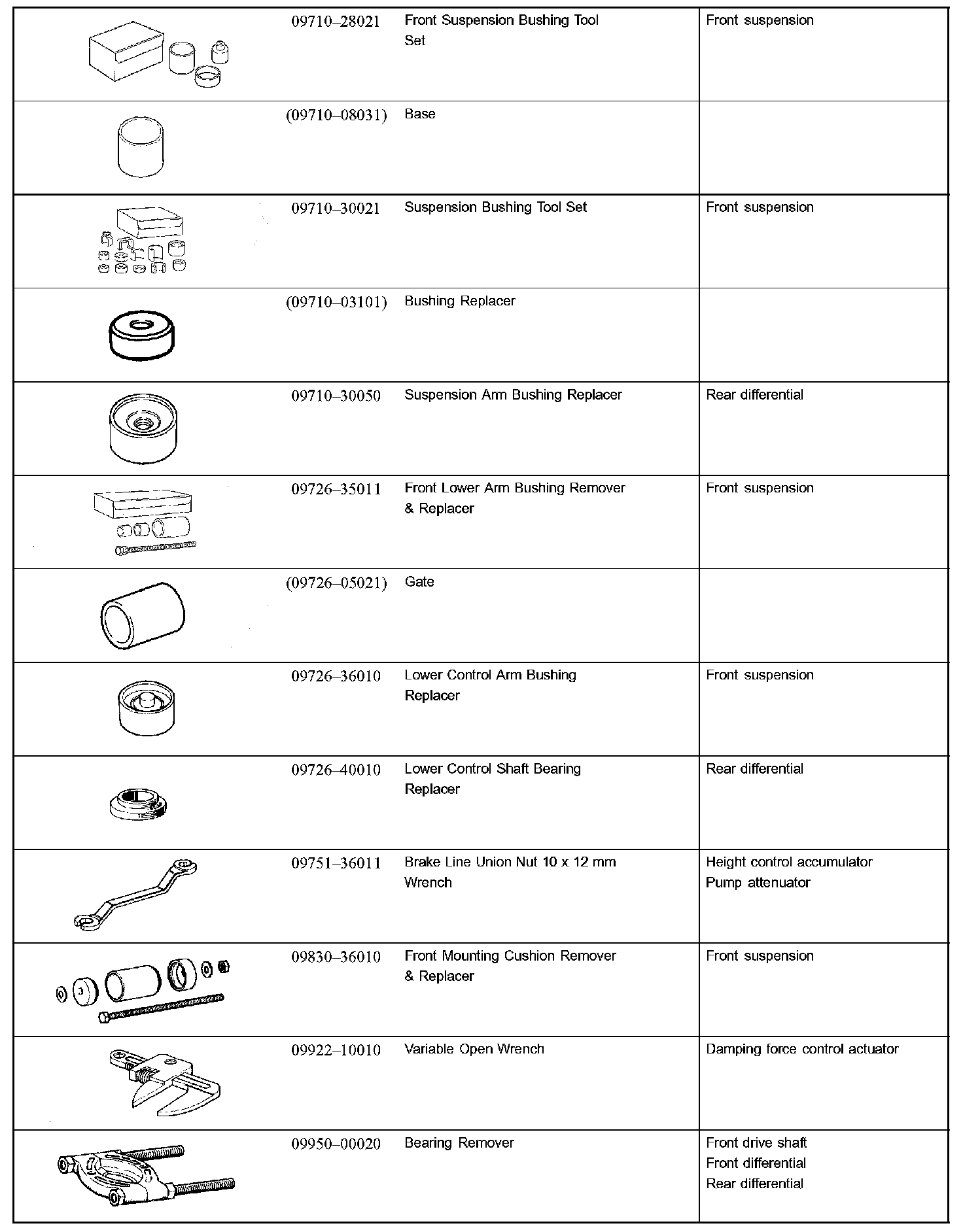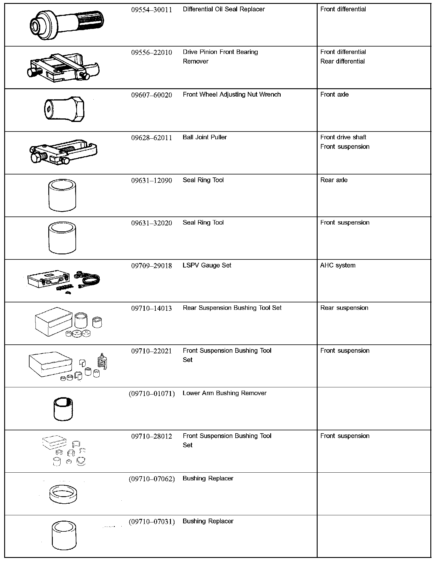 Suspension And Axle - SSM (Special Service Materials):