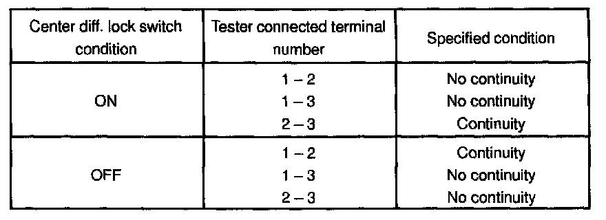 6. INSPECT CENTER DIFF. LOCK SWITCH CONTINUITY