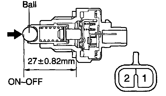 b. Check that continuity exists between terminals 1 and 2 when pushing the ball at the tip of the switch.