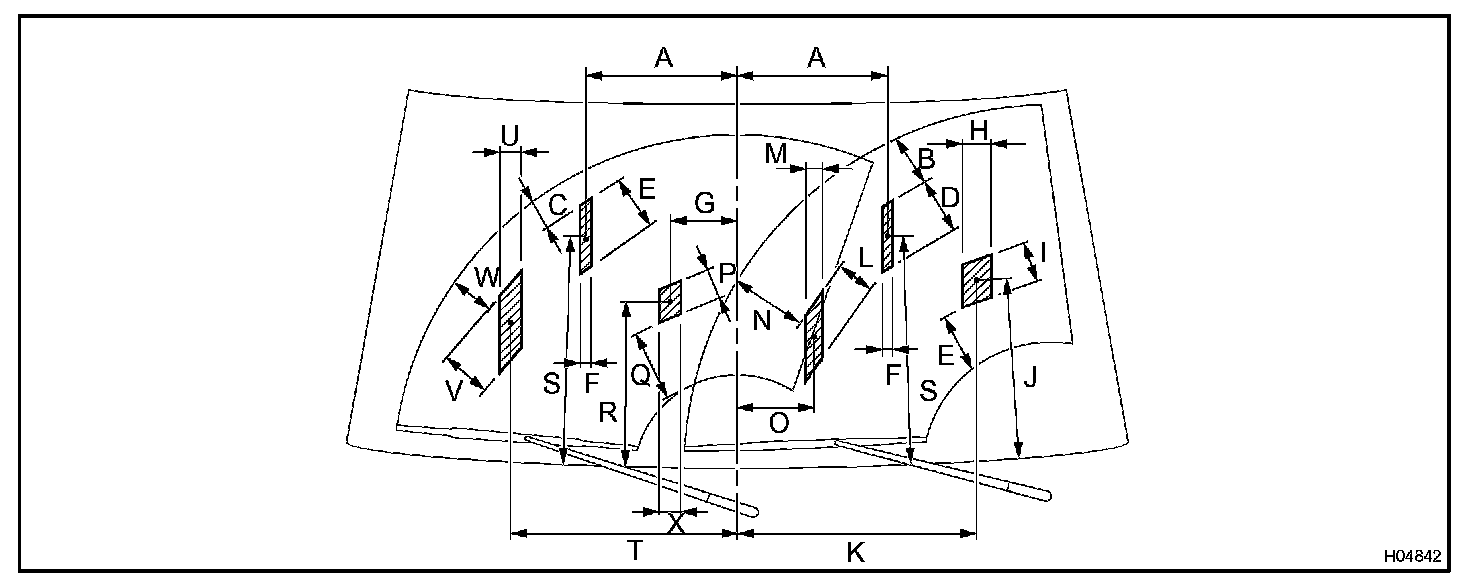 While operating the washer, check if the point where the washer fluid hits the windshield is within the range indicated by the hatched line.