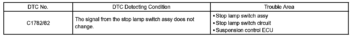 When inspecting by test mode, the suspension control ECU scans changes to the signals. If there is no change, it outputs the test DTC (C1782/82).