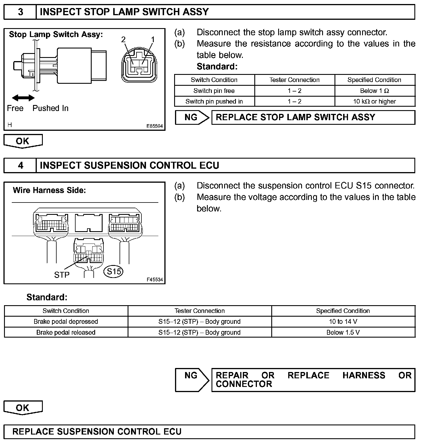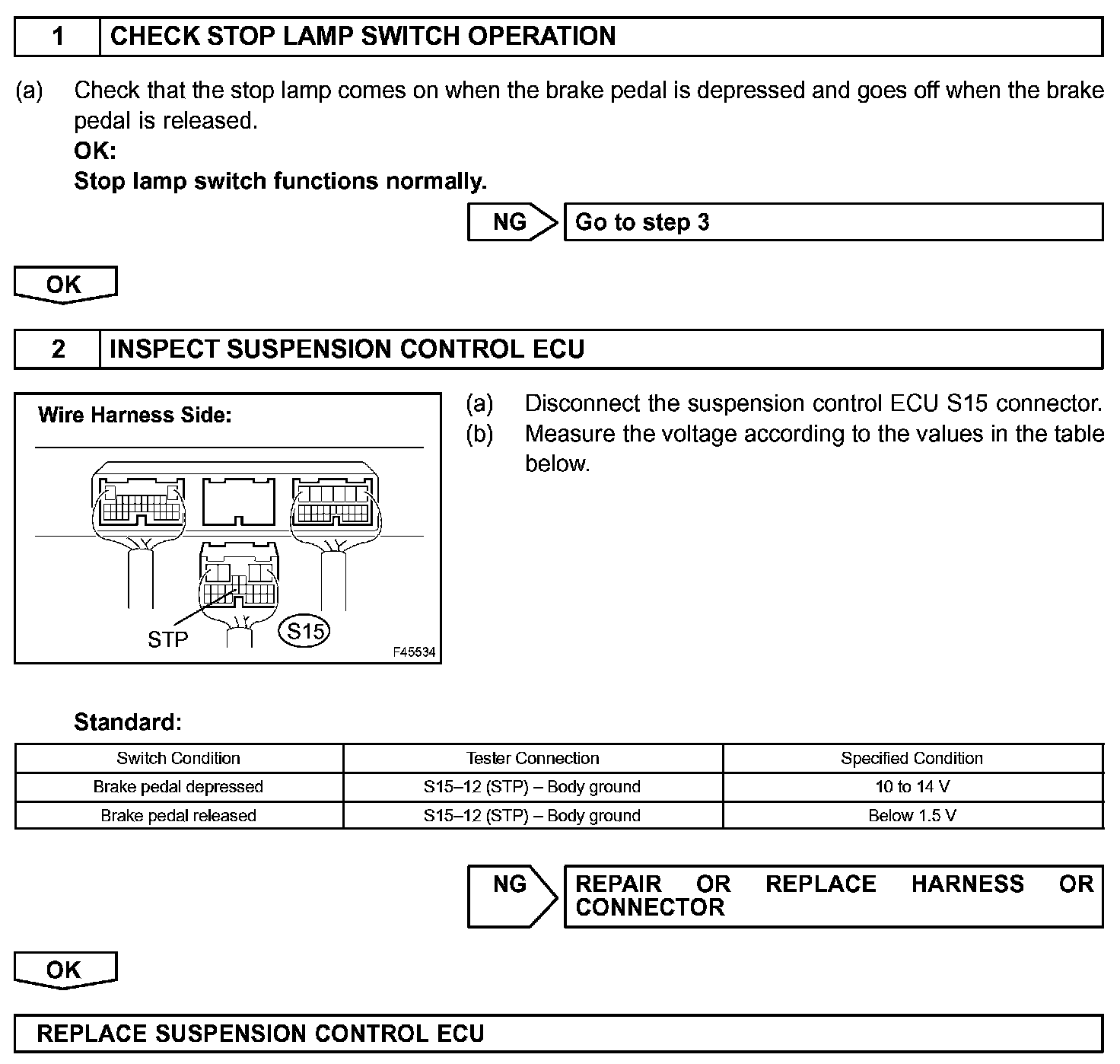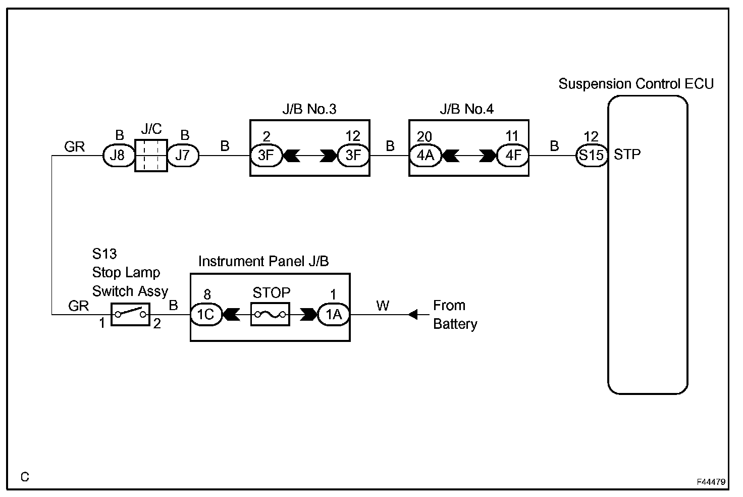 When the brake pedal is depressed, the stop lamps come on and the signal is sent to the STP terminal of suspension control ECU.