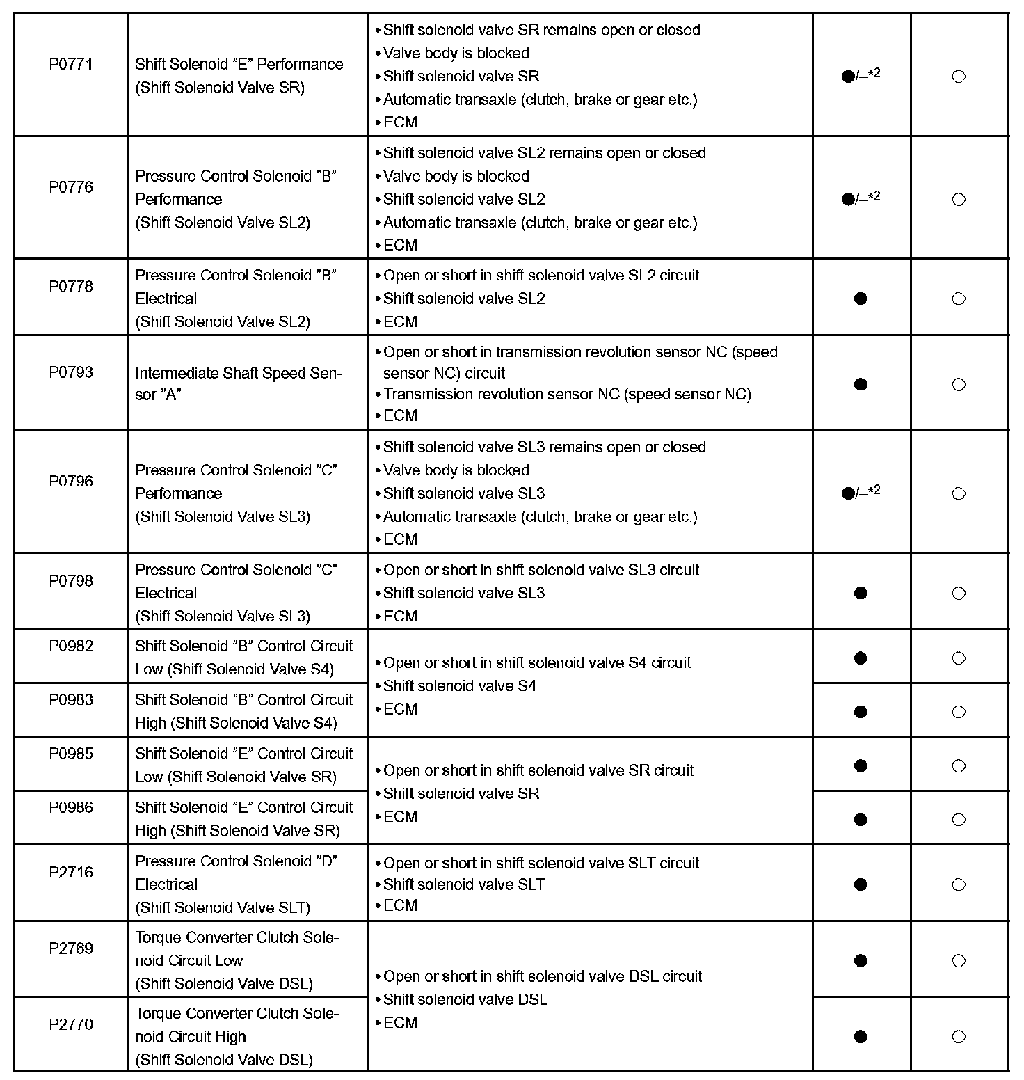 P0771 - P2770:
