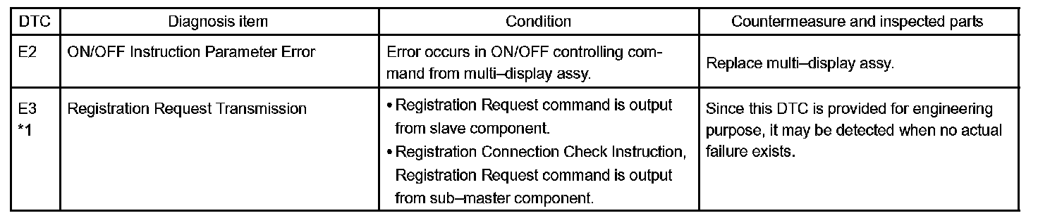 - *4: When 210 seconds have elapsed after pulling out the power supply connector of the master component with the ignition switch in the ACC or ON position, this code is stored.