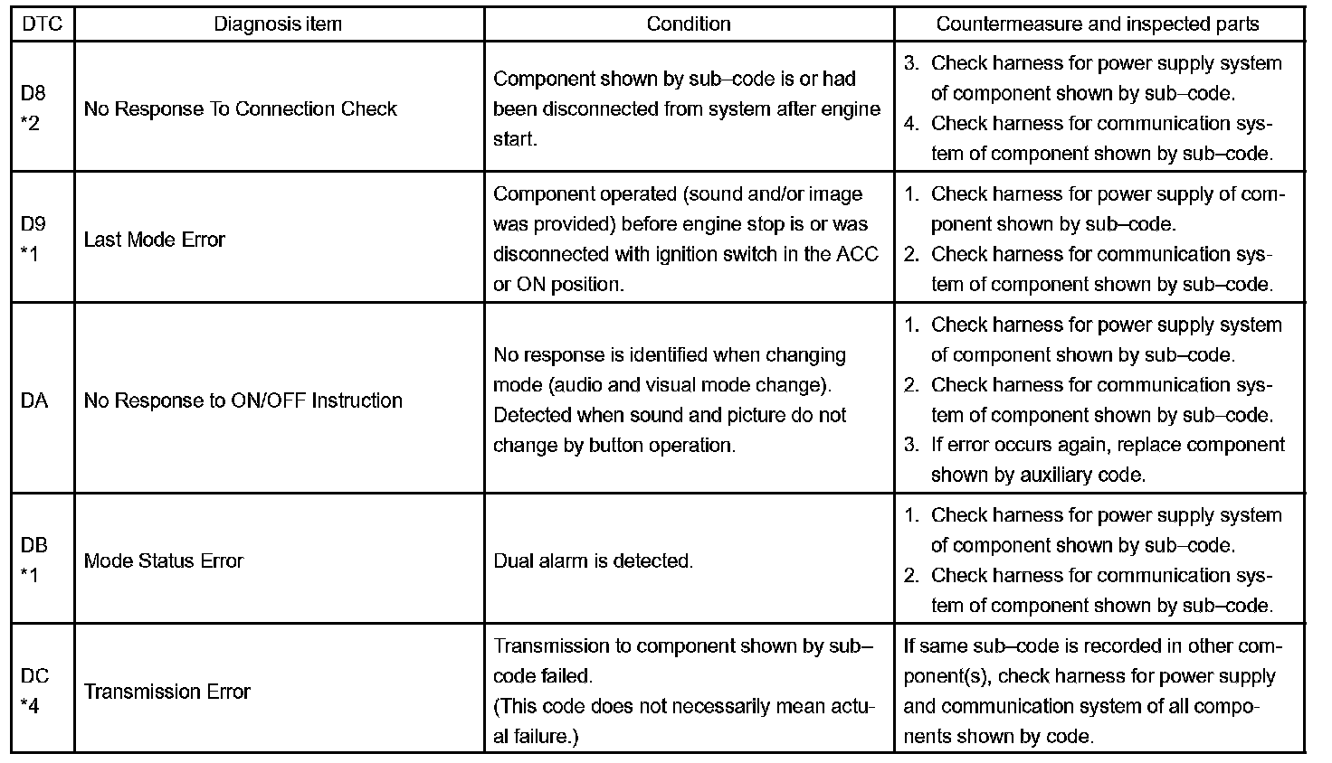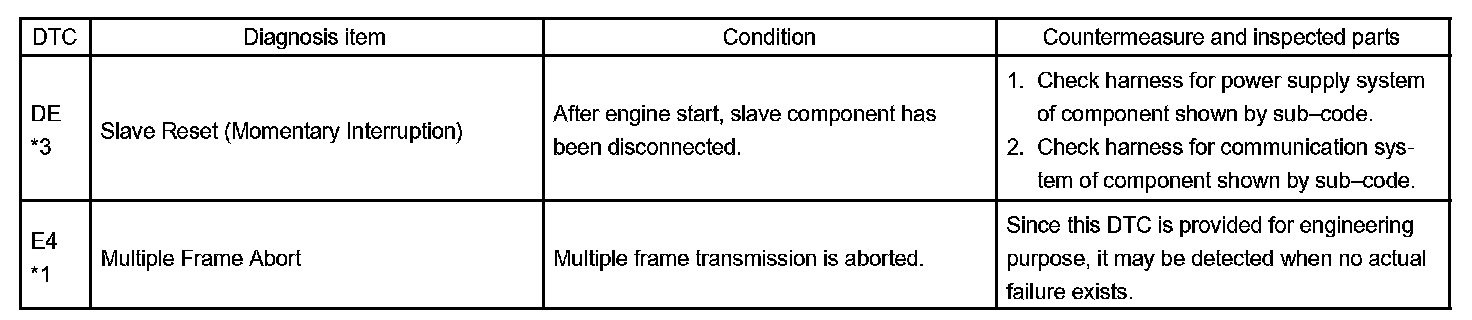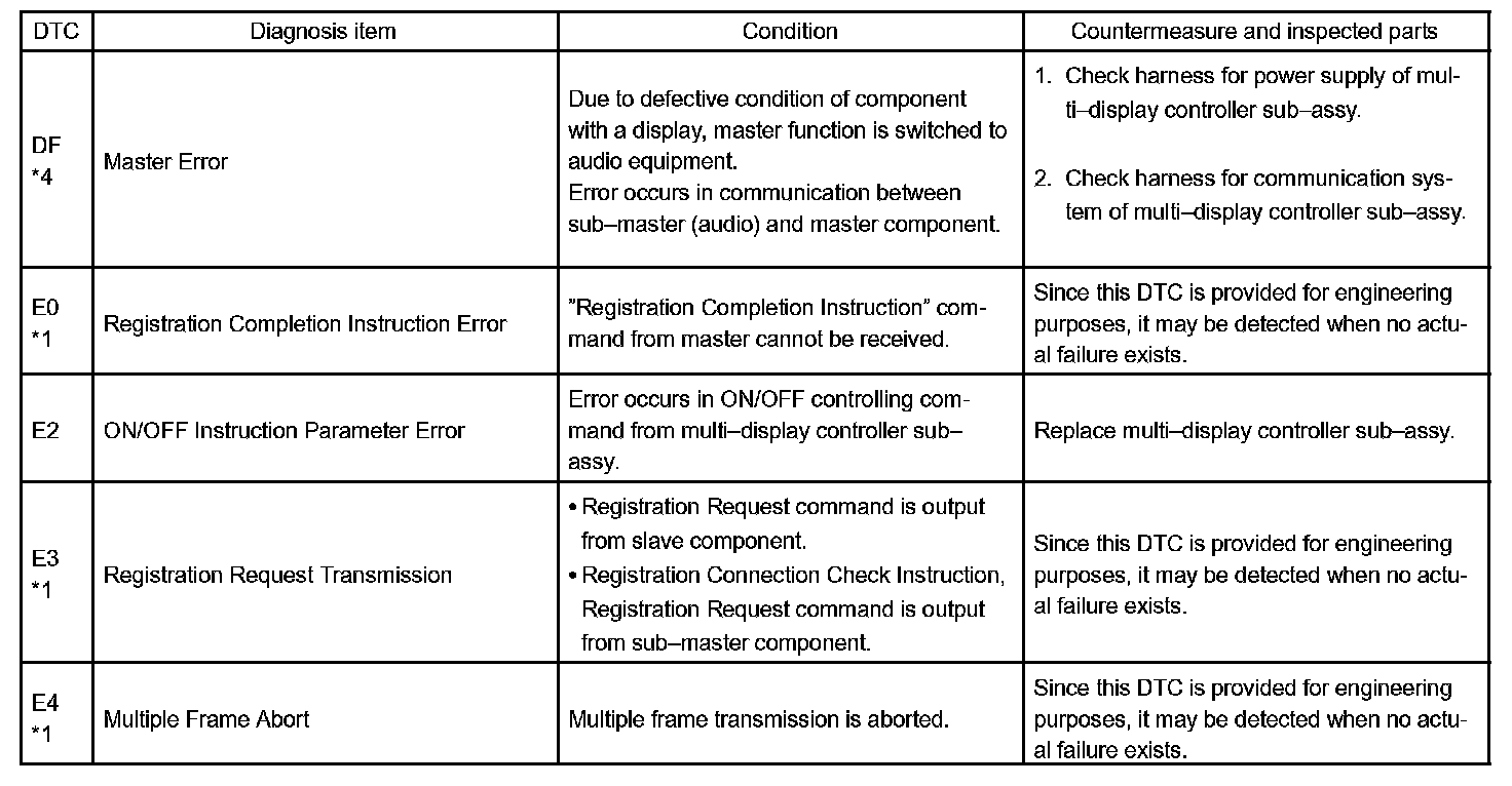 - *4: The code is stored 210 seconds after the power supply connector of the master component is disconnected with the ignition switch in the ACC or ON position.