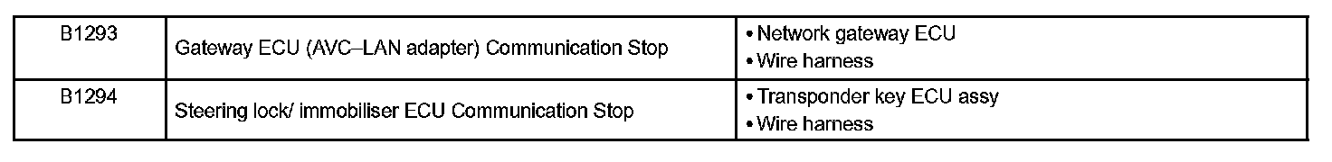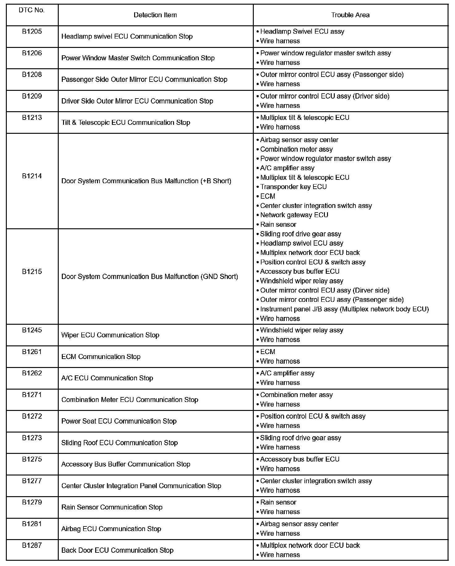 DIAGNOSTIC TROUBLE CODE CHARTB1205 - B1287: