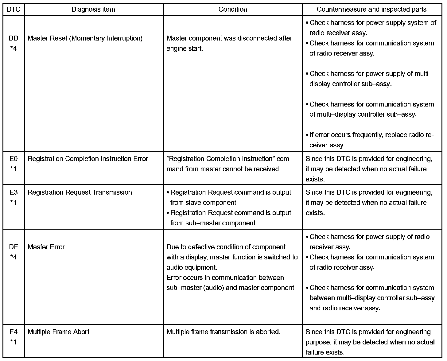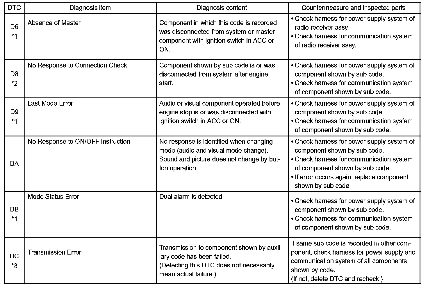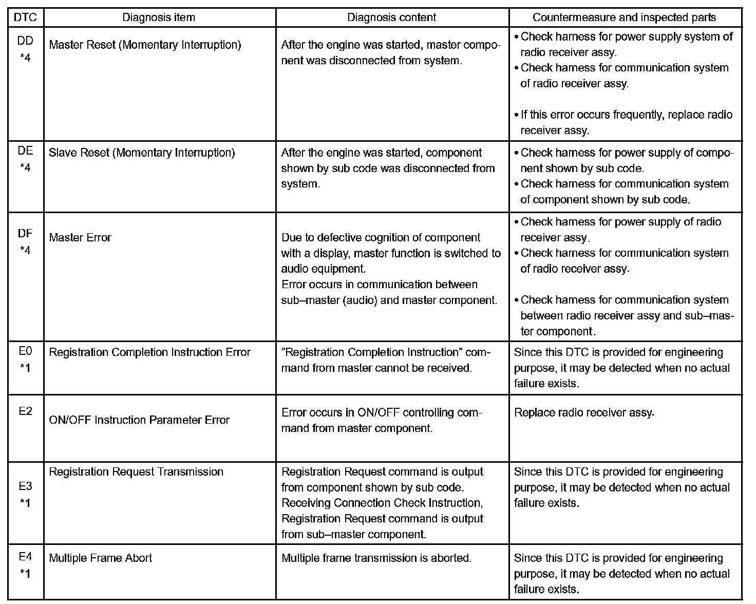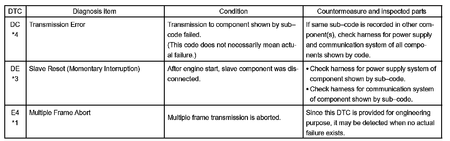 - *4: The code is stored 210 seconds after the master component power supply is disconnected with the ignition switch in the ACC or ON position.