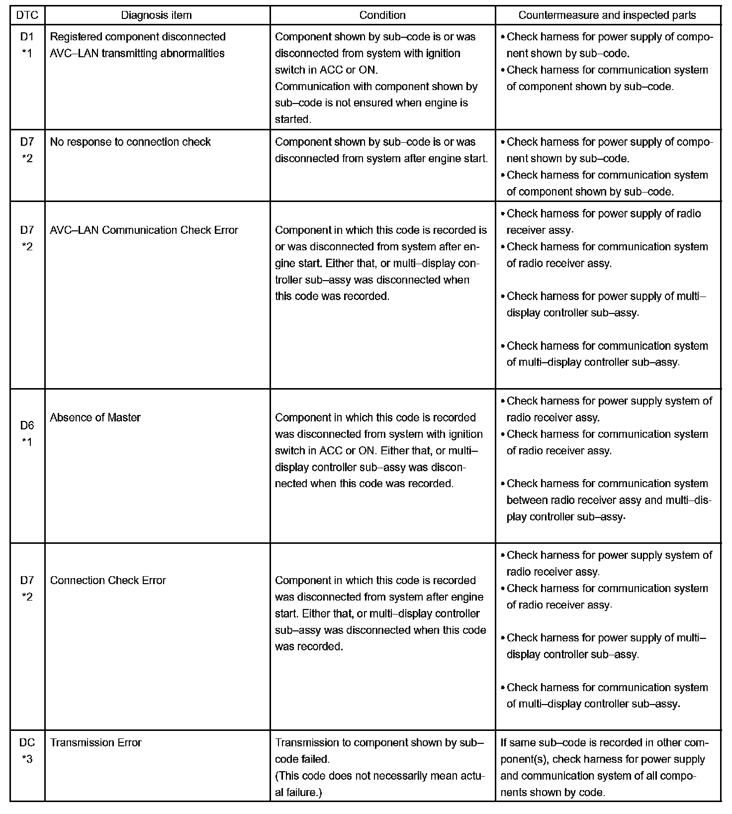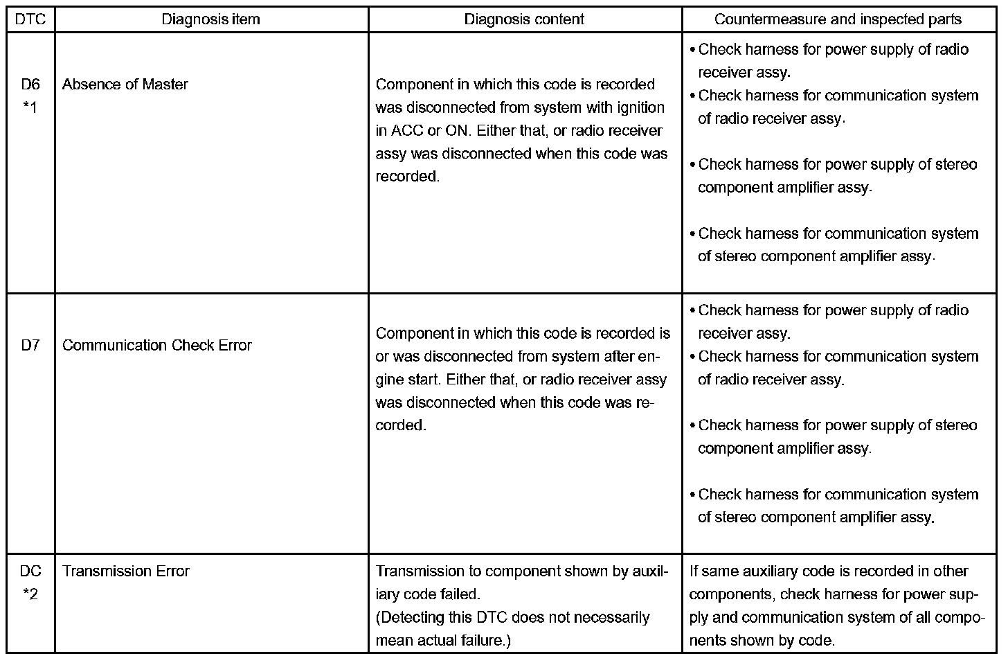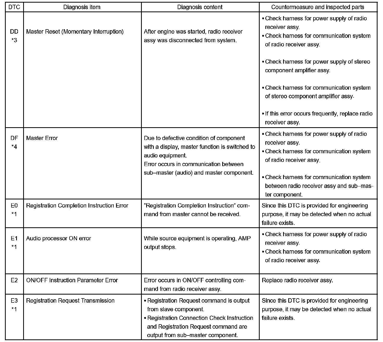 - *4: The code is stored 210 seconds after the master component power supply is disconnected with the ignition switch in the ACC or ON position.