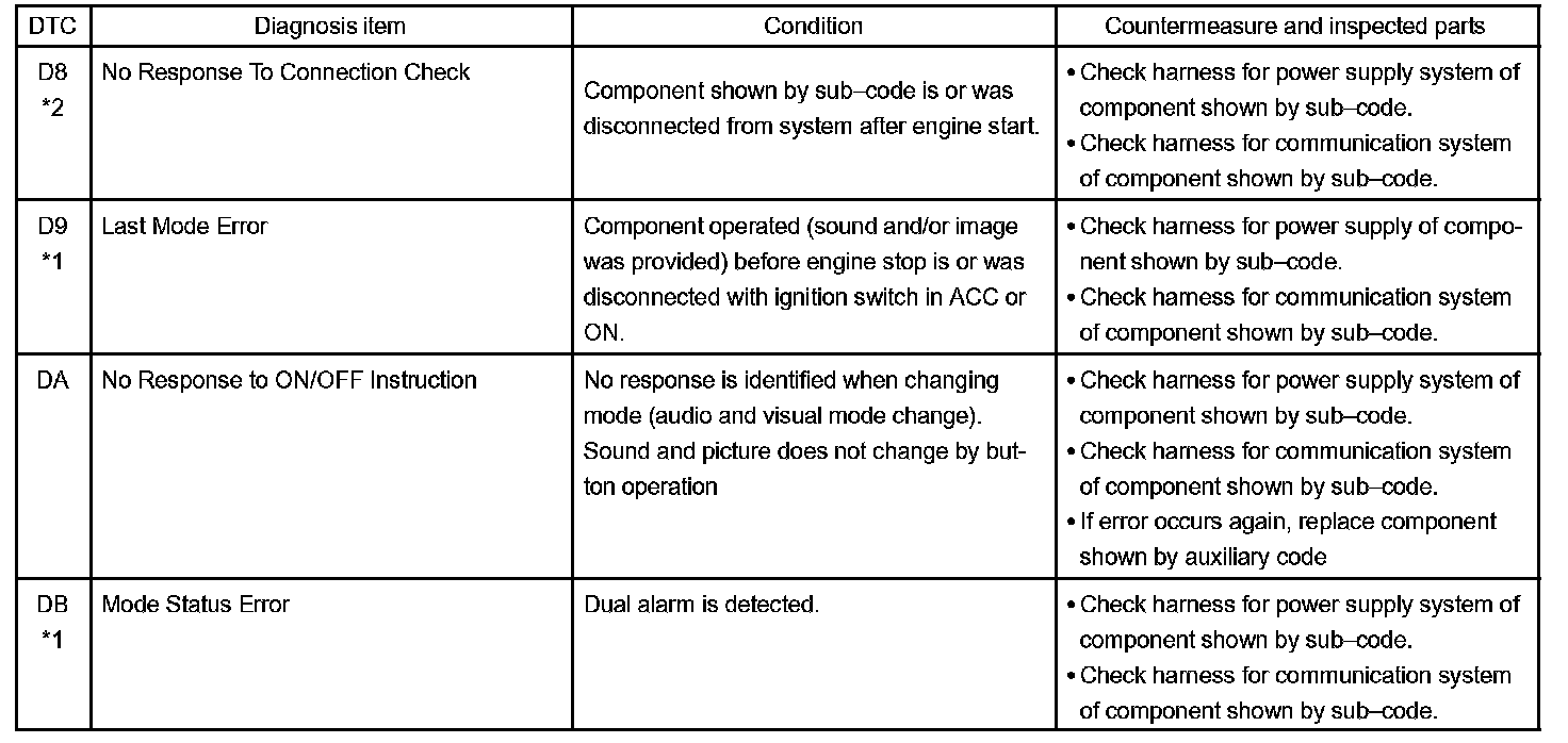 - *1: Even if no failure is detected, this code may be stored depending on the battery condition or voltage for starting the engine.