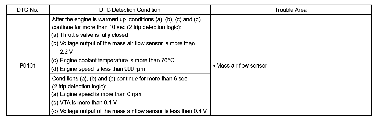 DTC P0101 MASS OR VOLUME AIR FLOW CIRCUIT RANGE/PERFORMANCE PROBLEMCIRCUIT DESCRIPTION