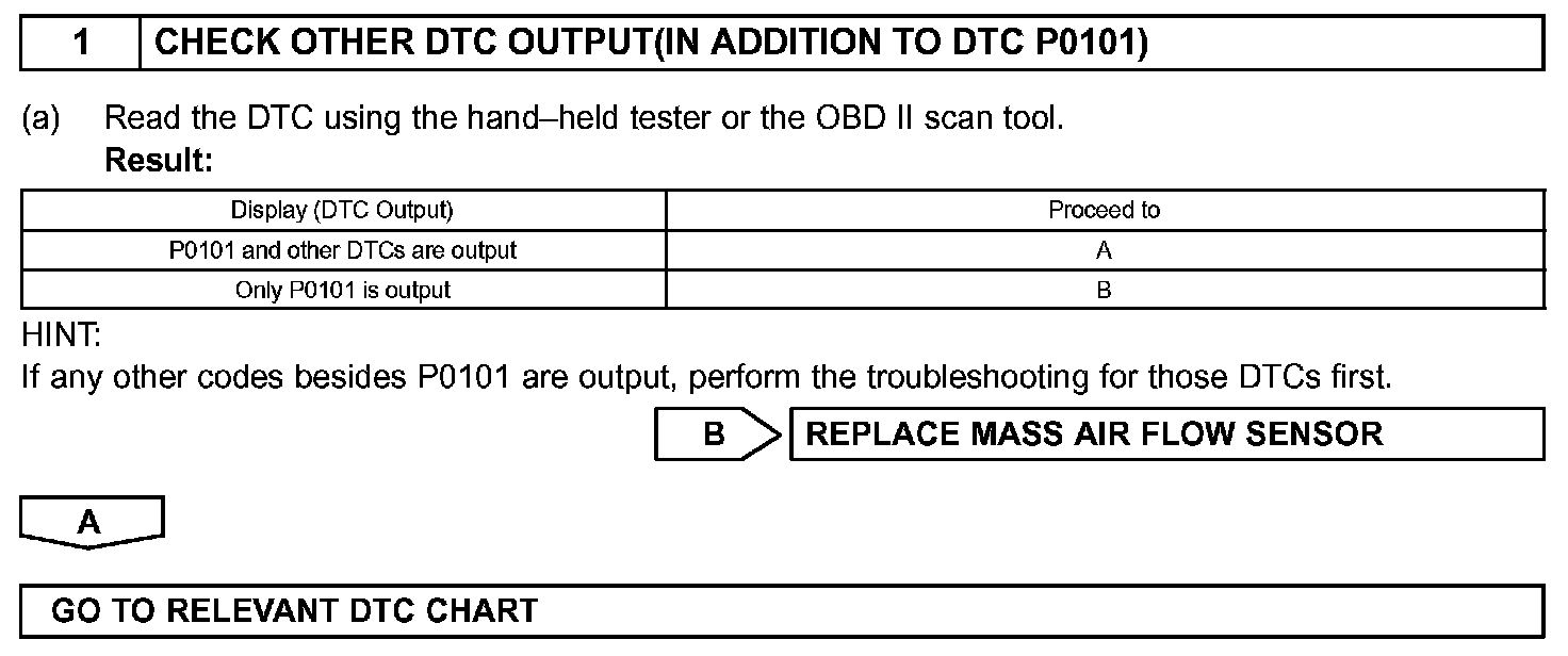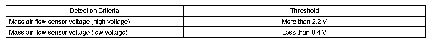 Example: If the voltage is outside the range of 0.4 V to 2.2 V, the ECM interprets this as a defect in the MAF sensor and sets a DTC.