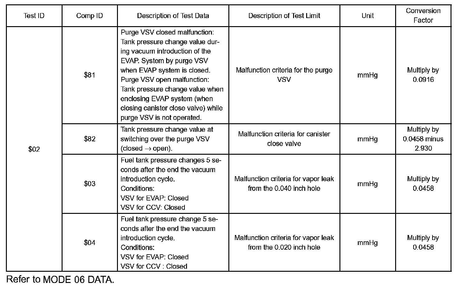 2. If one or more of the tests in the time $02 category show "Fail", the EVAP evaluation monitor did operate and the ECM detected a problem.
