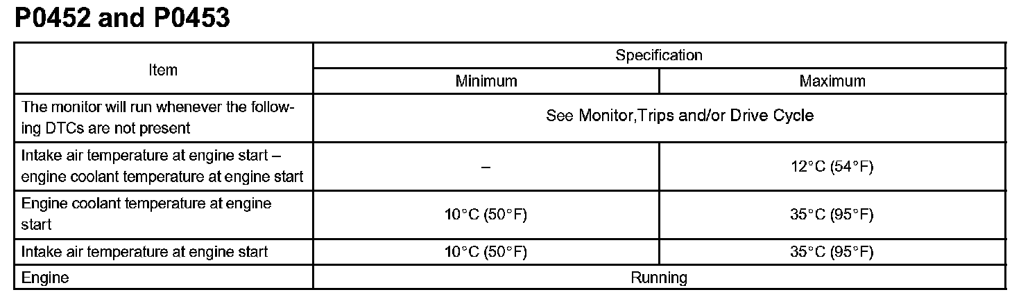 DTC P0452 EVAPORATIVE EMISSION CONTROL SYSTEM PRESSURE SENSOR/SWITCH LOW INPUTMONITOR DESCRIPTION