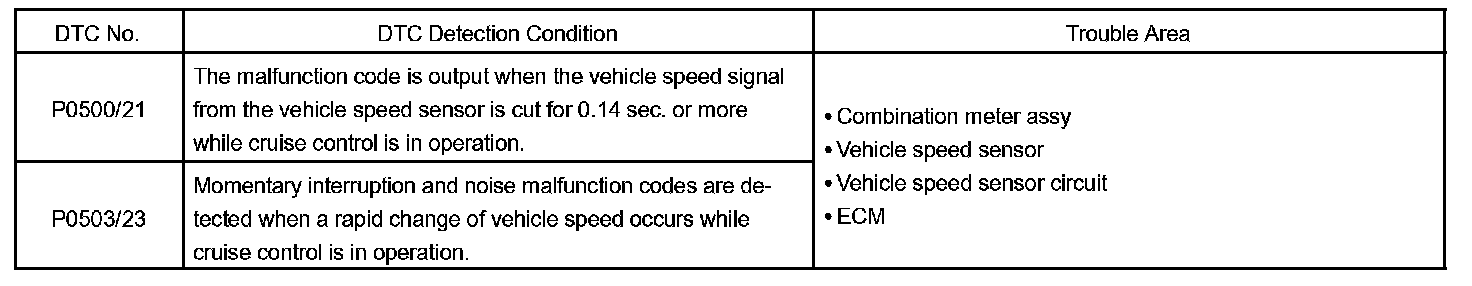 DTC P0500 VEHICLE SPEED SENSOR "A"CIRCUIT DESCRIPTION