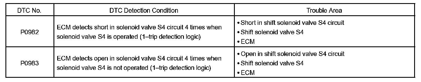 DTC P0983 SHIFT SOLENOID "D" CONTROL CIRCUIT HIGH (SHIFT SOLENOID VALVE S4)CIRCUIT DESCRIPTION