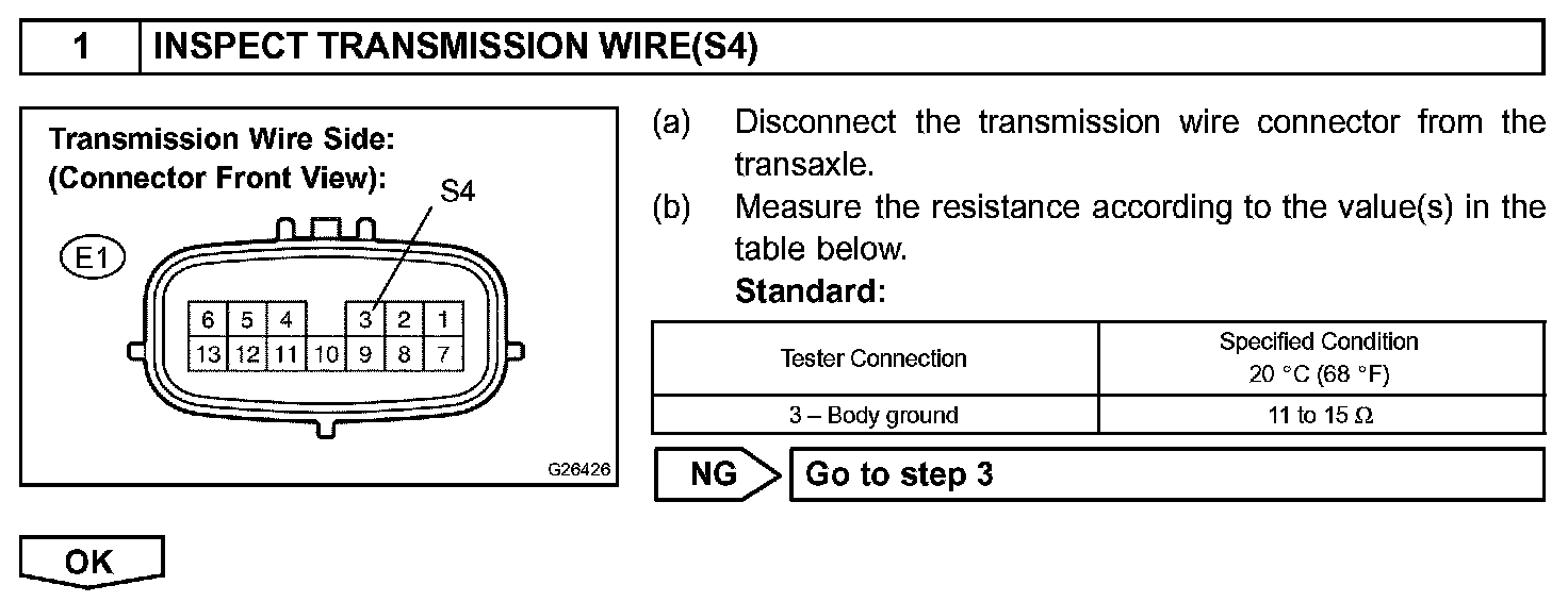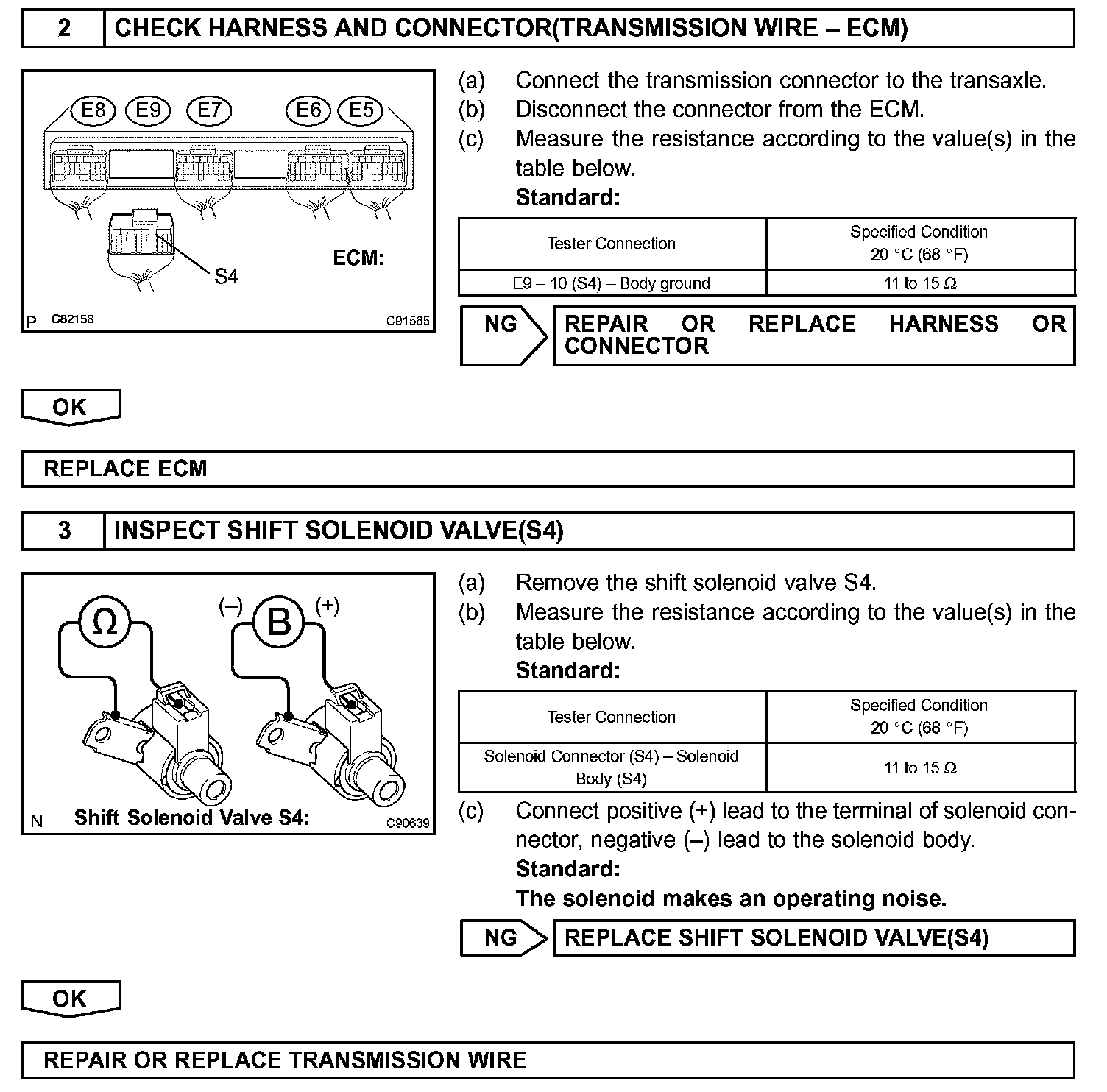 Manual shifting as shown in the table must be done (In case of a short circuit, the ECM stops sending the current to the short circuit solenoid).