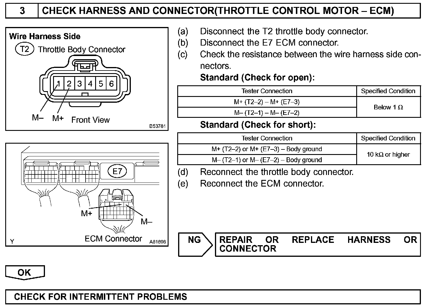 CHECK FOR INTERMITTENT PROBLEMS