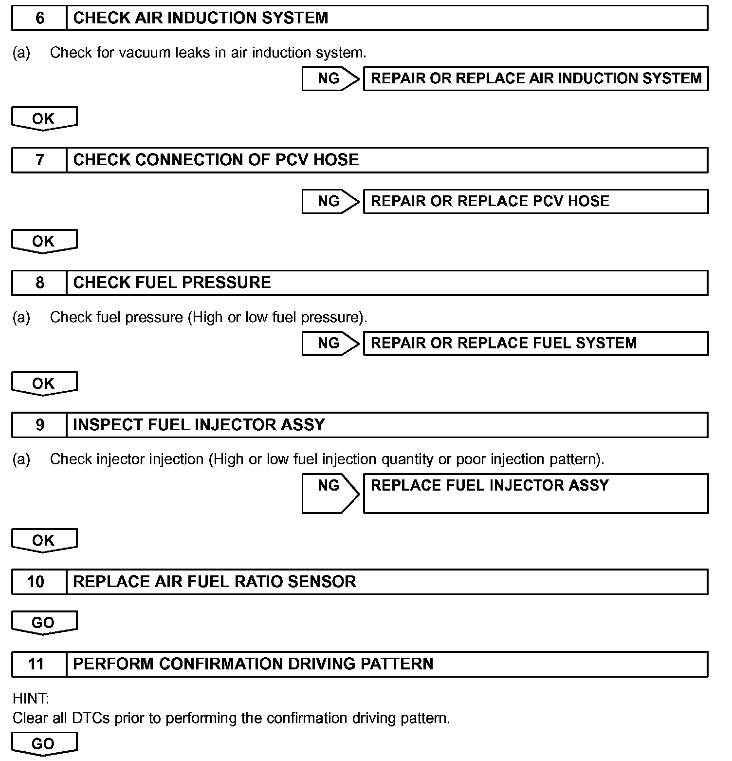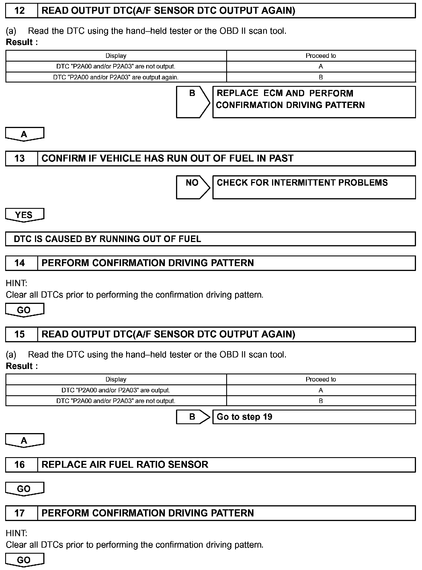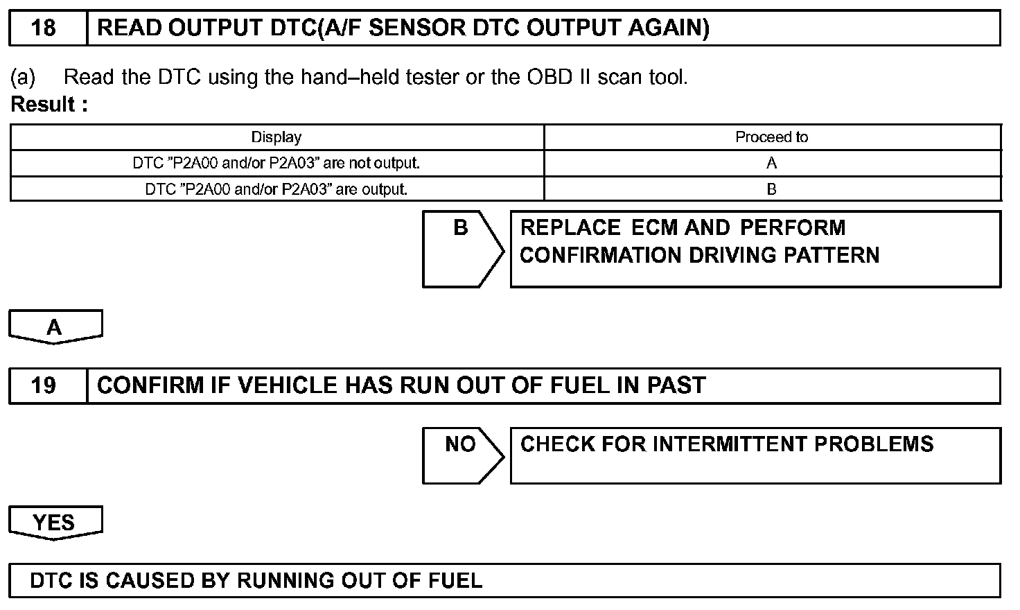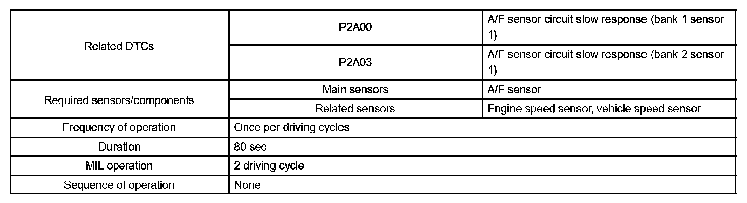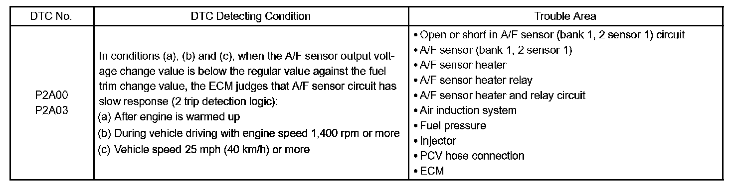 - DTC P2A00 or P2A03 may be also detected, when the air fuel ratio is stuck rich or lean.
