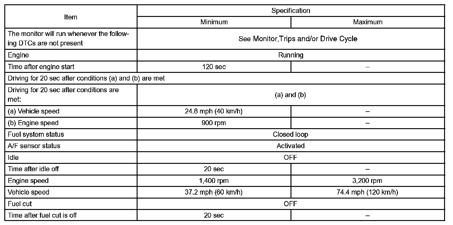 d. Drive the vehicle at 38 to 75 mph (60 to 120 km/h) and engine speed at 1,400 to 3,200 rpm for 3 to 5 min.