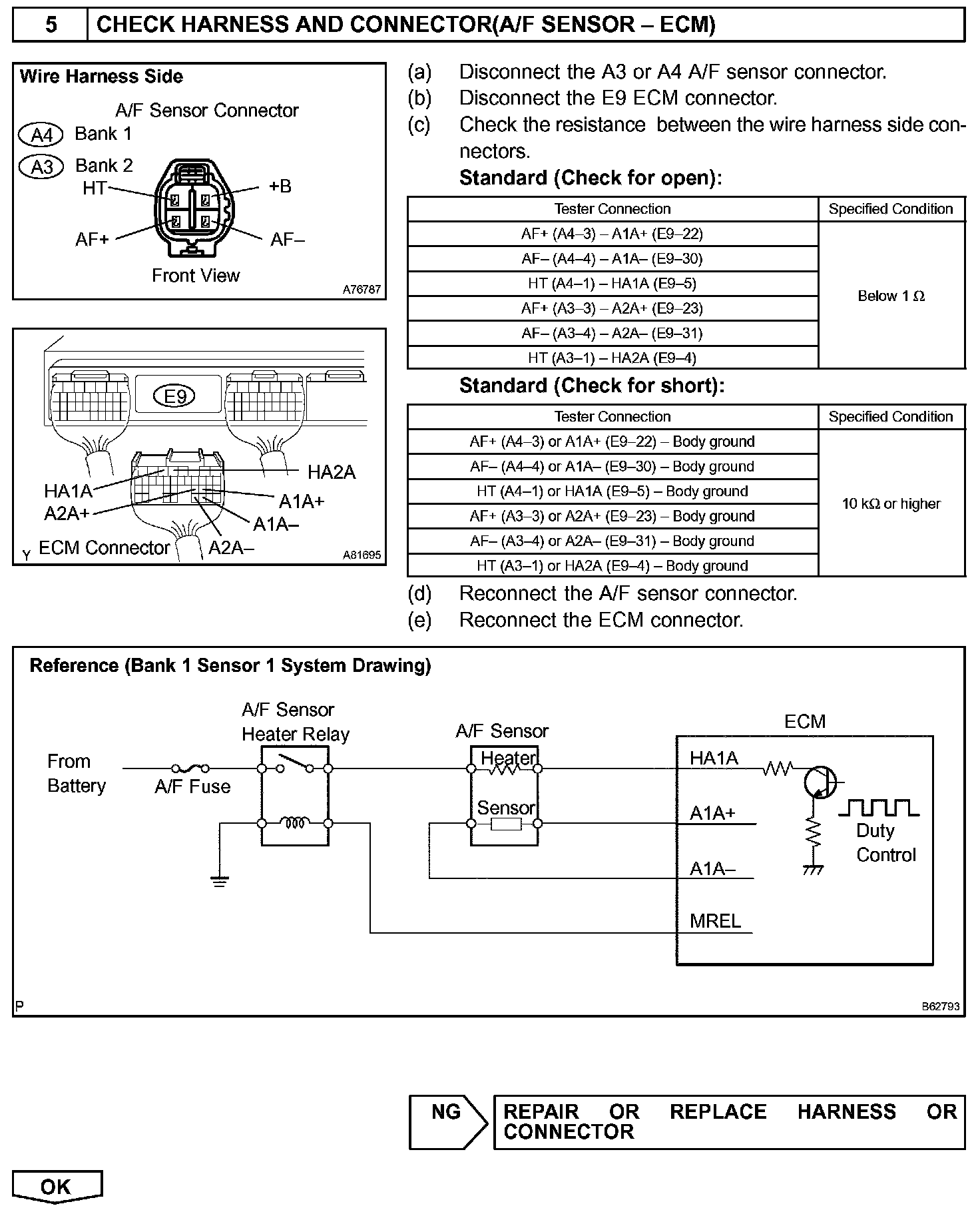 d. Check the connector and terminal.