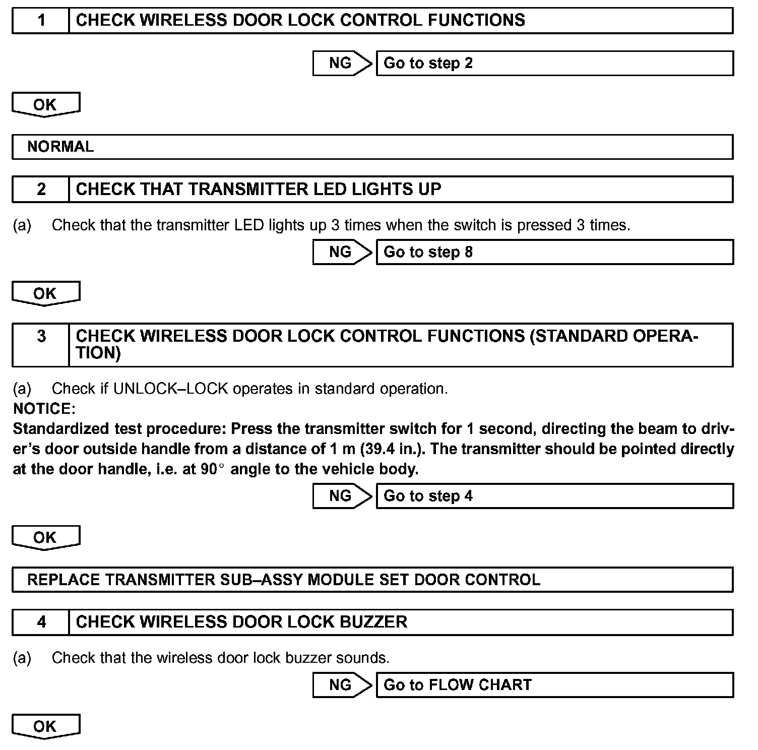 ONLY WIRELESS CONTROL FUNCTION DOES NOT OPERATE (PREPARE NEW OR NORMAL TRANSMITTER OF THE SAME TYPE VEHICLE)