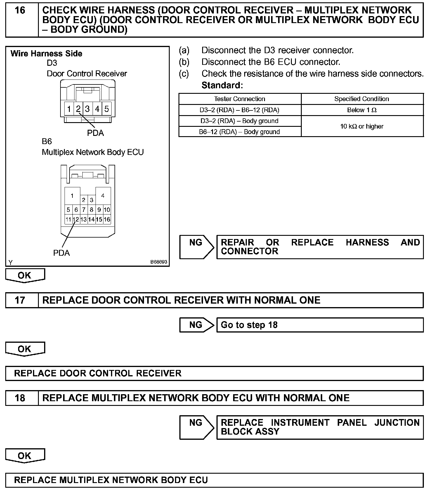 The door control receiver receives a signal from the transmitter and sends this signal to the multiplex network body ECU. Then, the multiplex network body ECU controls operation of the door locks, power windows and sliding roof. Also, the power back door ECU causes the power back door to open or close when it receives a signal from the transmitter via the door control receiver and multiplex network body ECU.