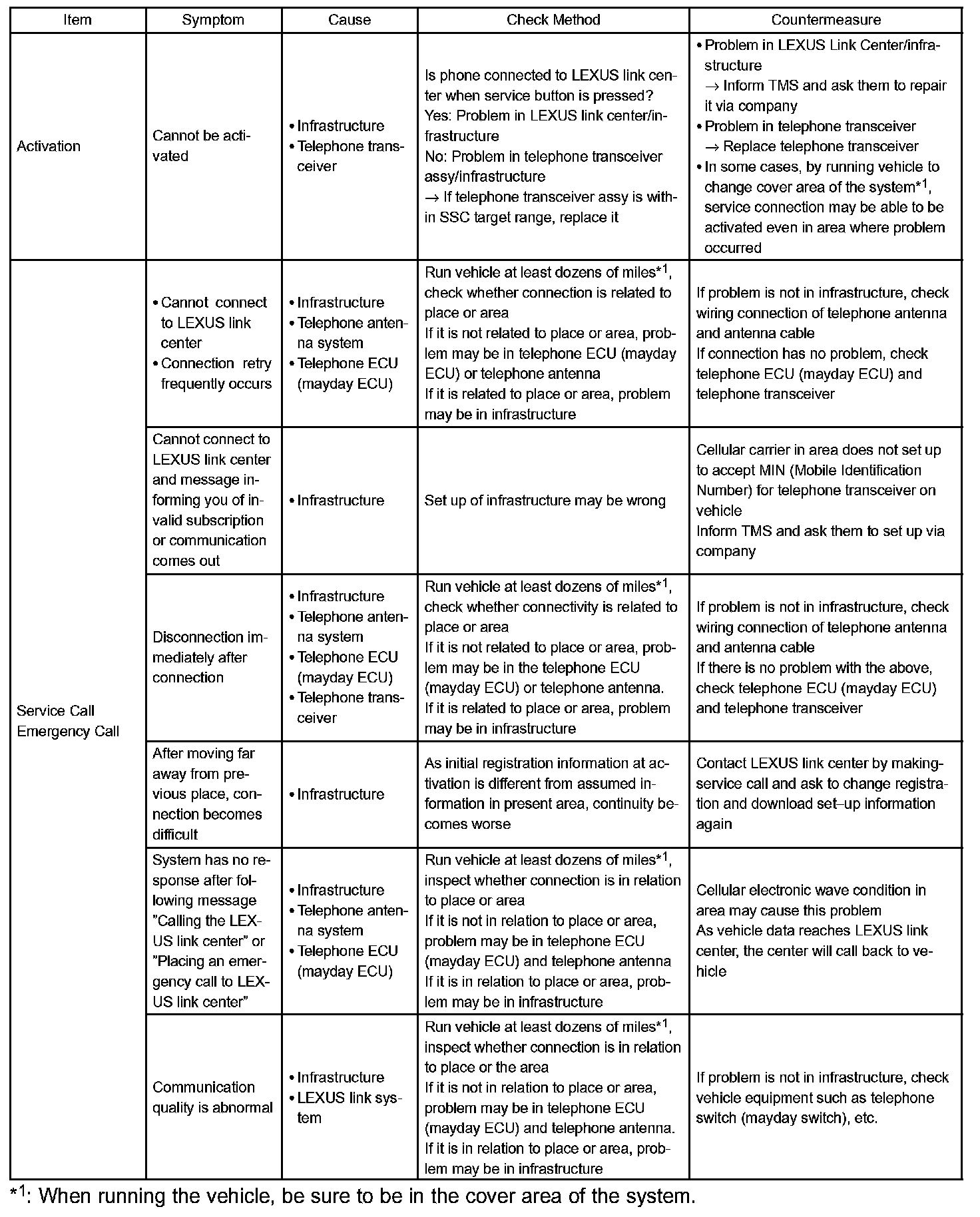LEXUS Link System Infrastructure Troubleshooting
