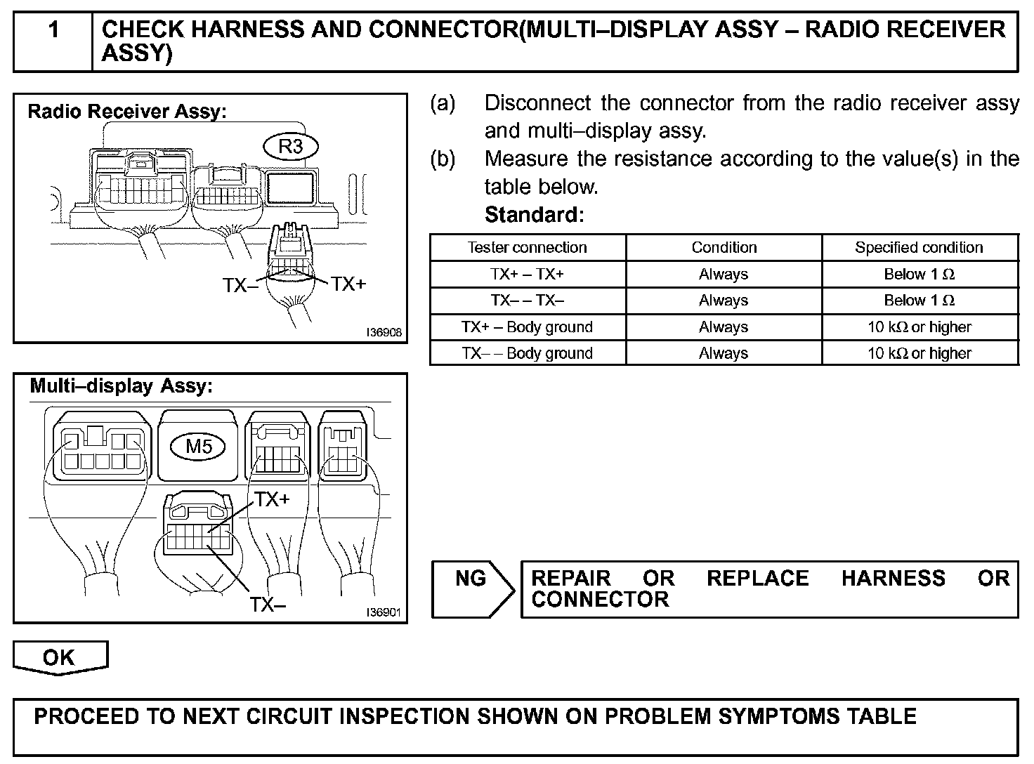 In AVC-LAN, Multi-display assy becomes the communication master, and the radio receiver assy has enough resistance necessary for transmitting the communication.