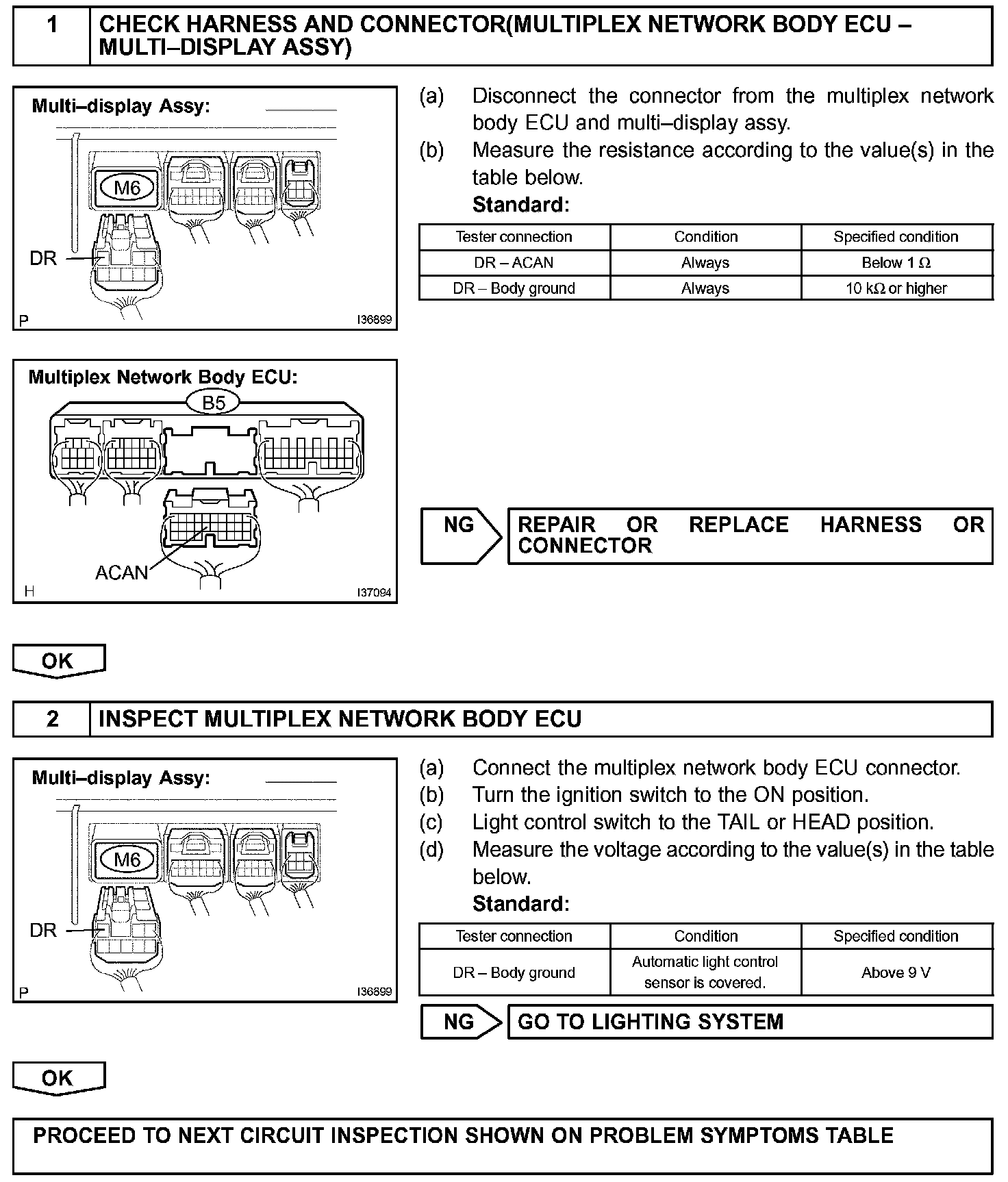 The multi-display assy dims the multi-display assy and panel switch by receiving the TAIL cancel signal from the body ECU.