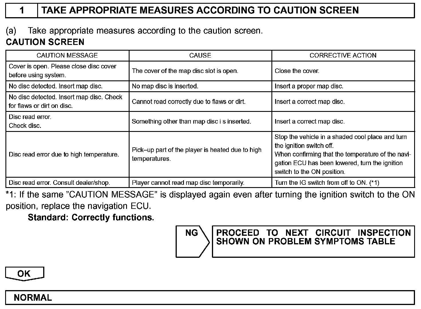 MAP SCREEN DISPLAYED DOES NOT APPEAR (DISC CAUTION SCREEN DOES NOT CHANGE)
