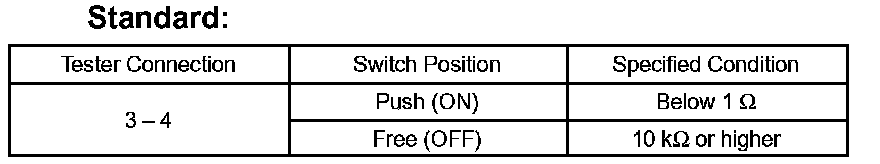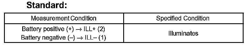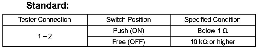 If the result is not as specified, replace the switch assembly or bulb.