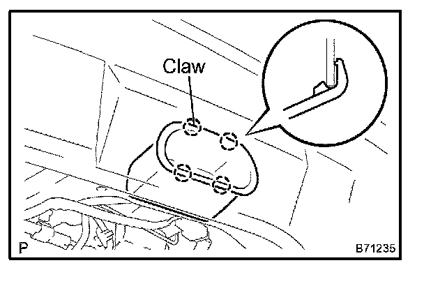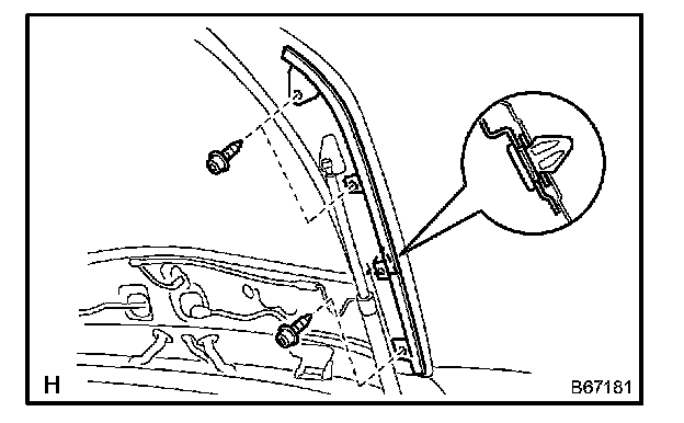 a. Using a screwdriver, disengage the 2 claws and 7 clips, and remove the trim upper.