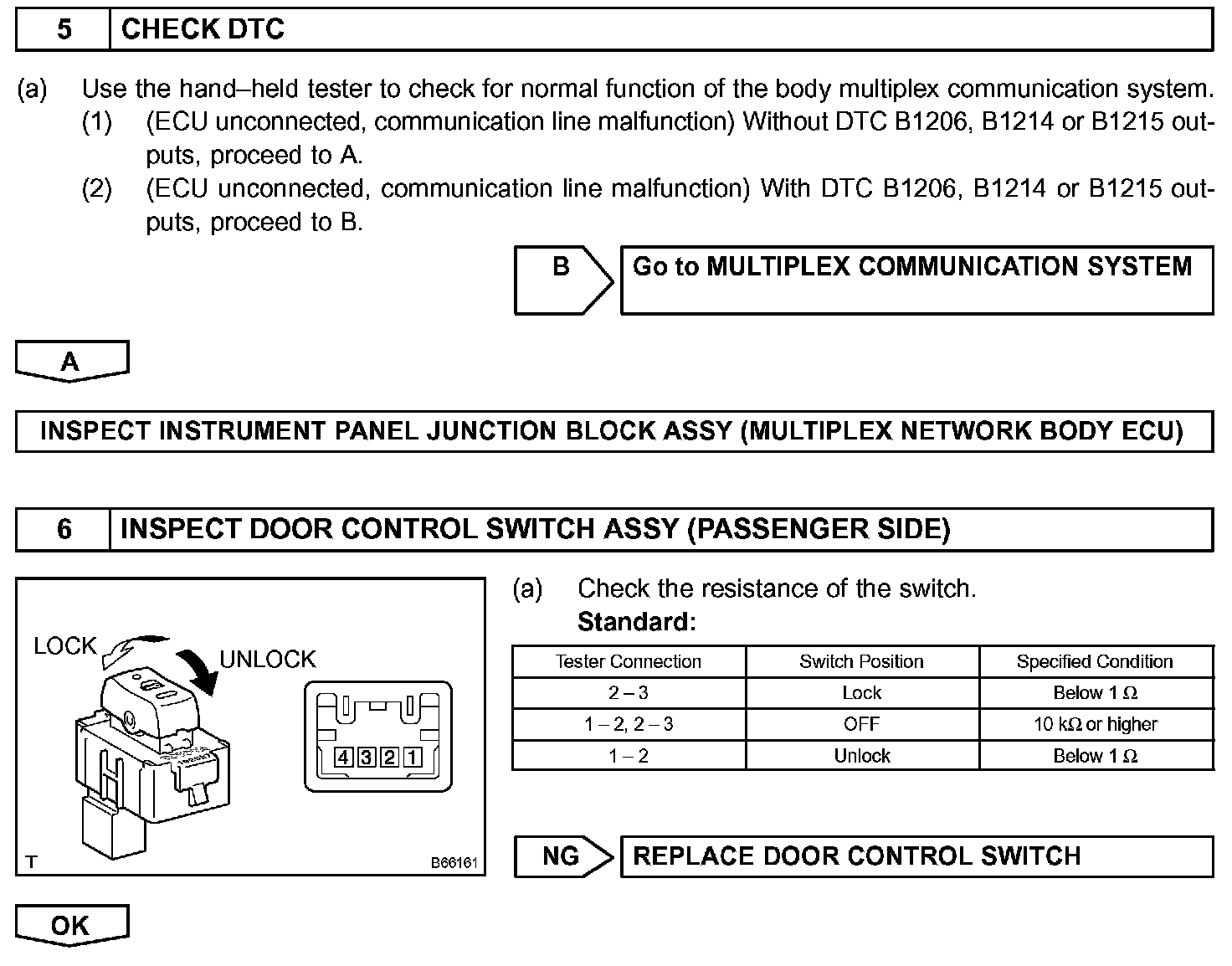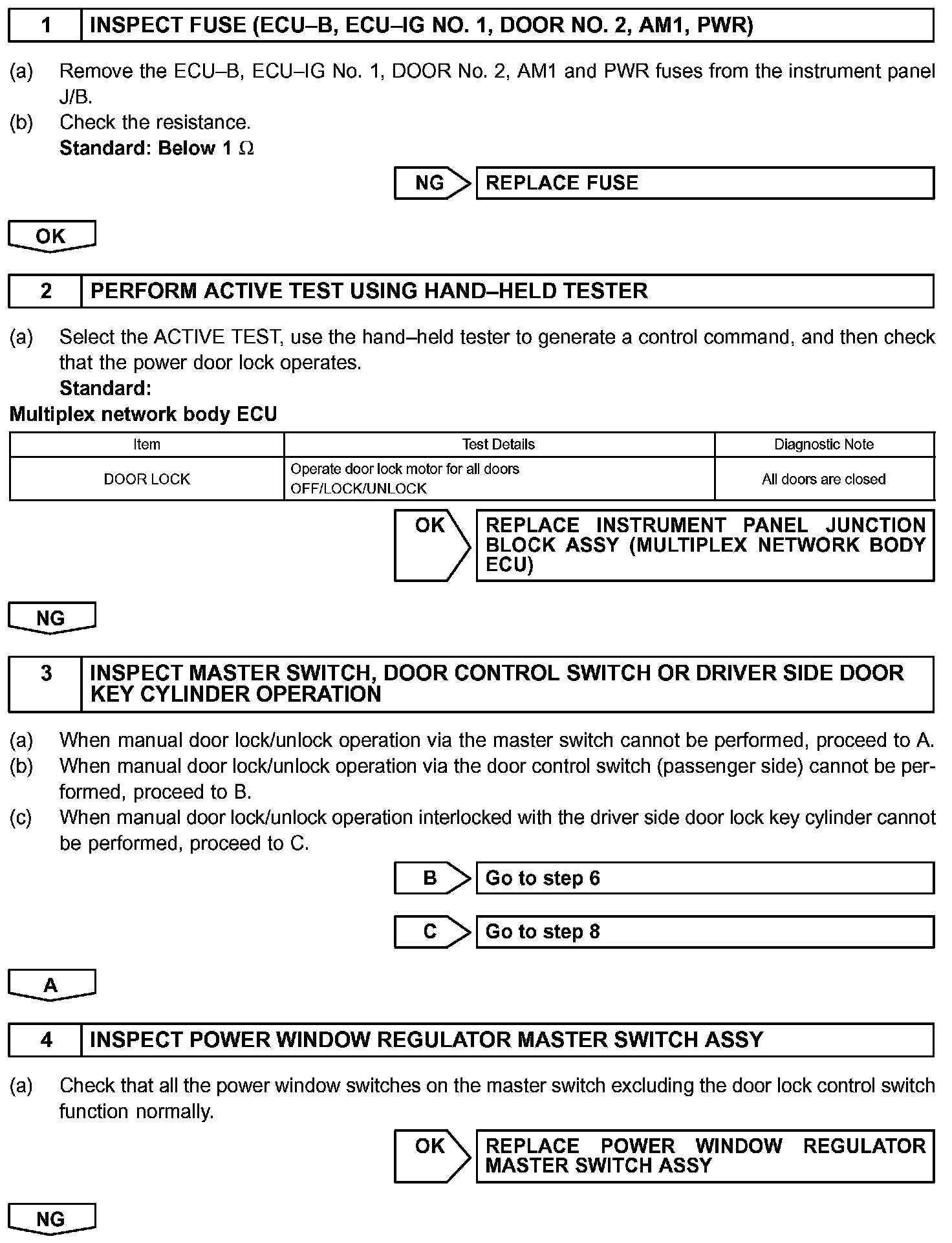 The body ECU drives the door lock motor after receiving a switch signal from the master switch, the door control switch and the driver door key cylinder.