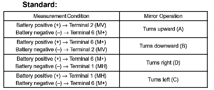 b. Apply battery voltage and check operation of the mirror.