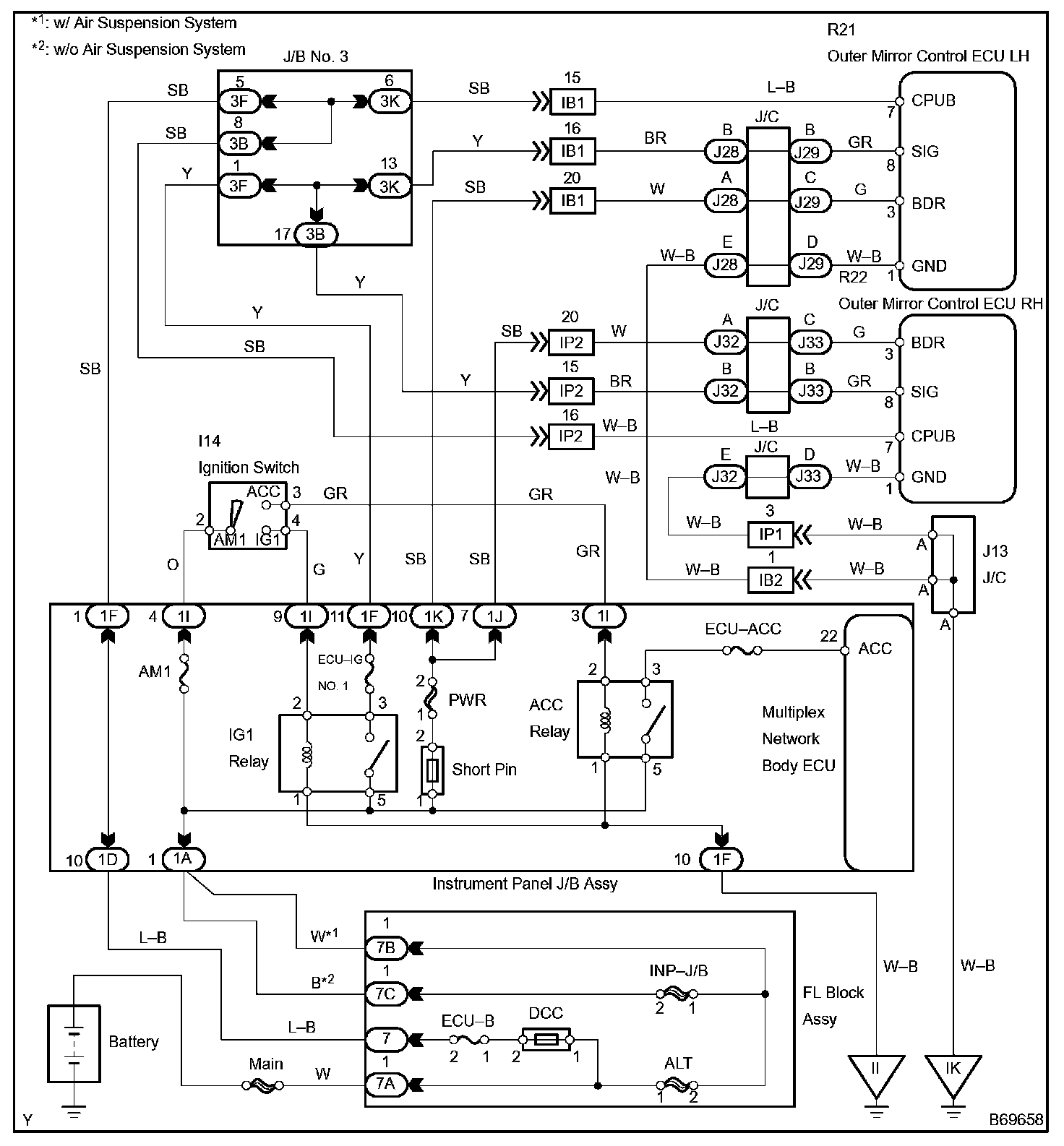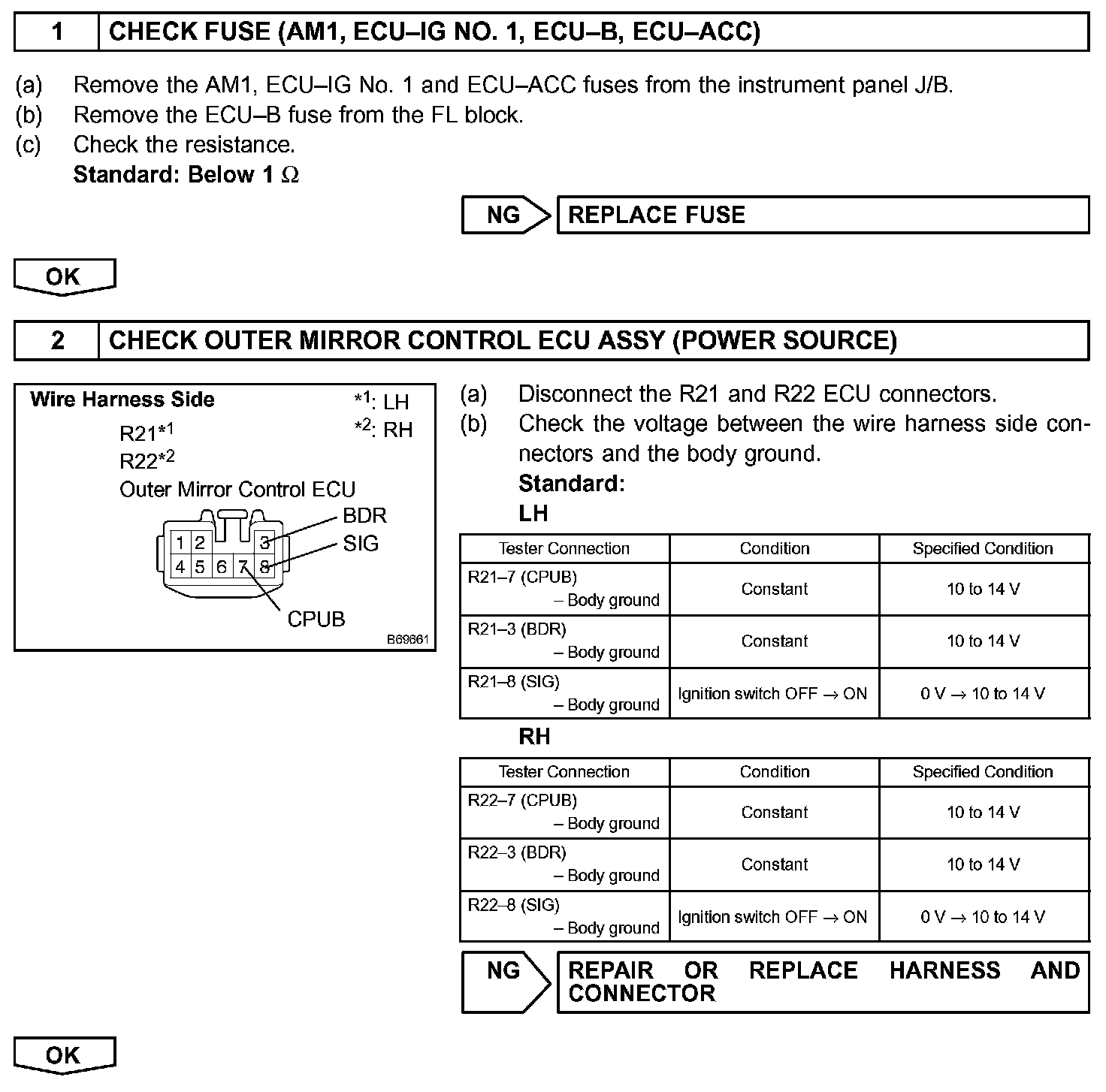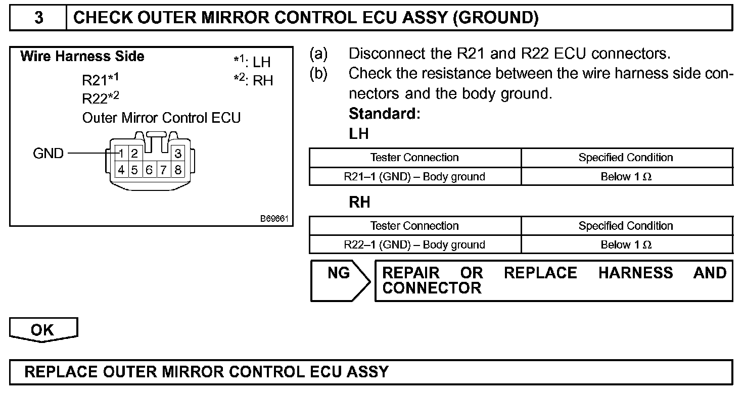 This is the power source circuit for the outer mirror control ECU.