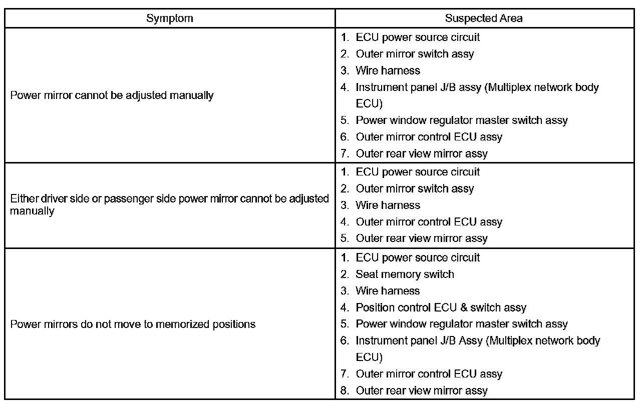 Problem Symptoms Table: