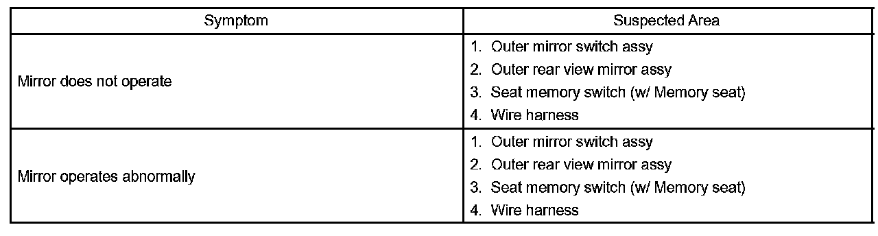 Problem Symptoms Table - Power Mirror Control System: