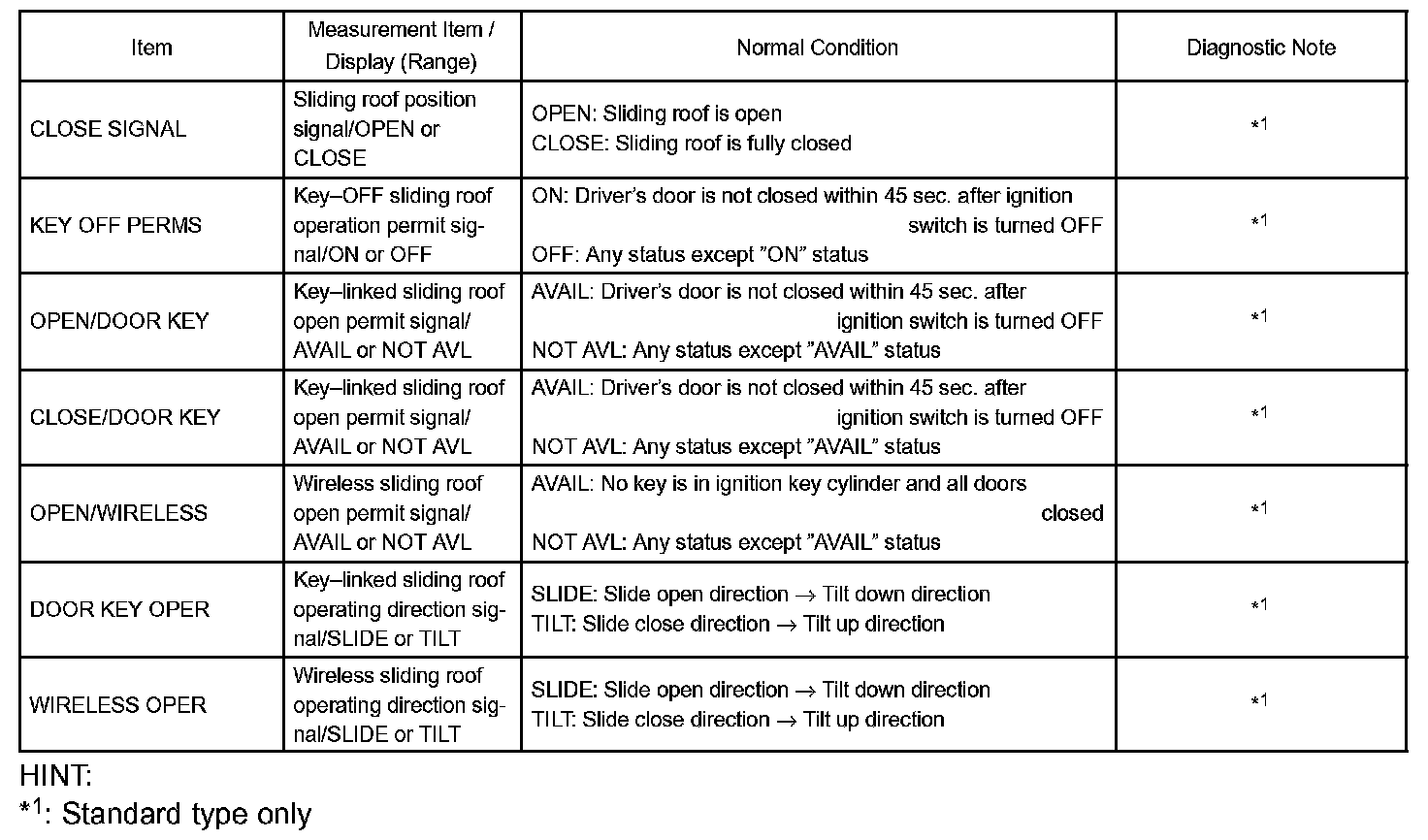 DATA LISTHINT: Using the DATA LIST displayed on the hand-held tester, you can read the value of the switch, sensor, actuator, etc. without parts removal. Reading the DATA LIST as the first step of troubleshooting is one way to shorten the lator time.