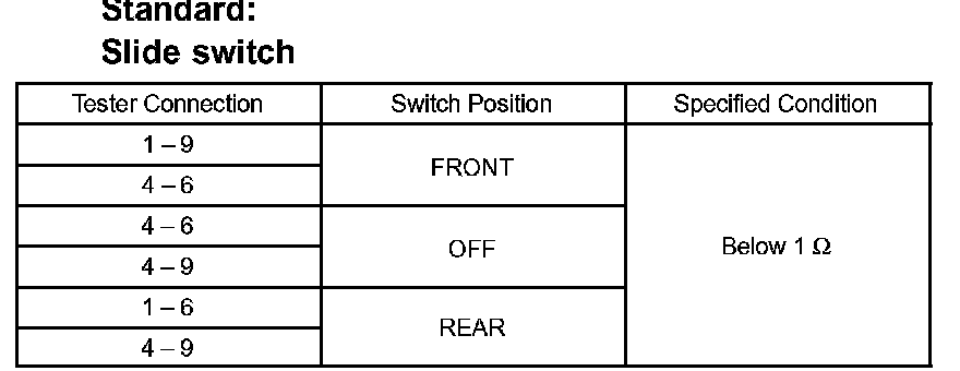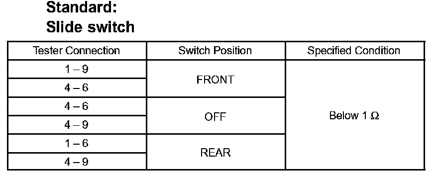 If the result is not as specified, replace the switch.