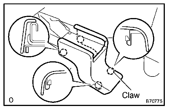 c. Using a screwdriver, disengage the claws and clip, and remove the cushion shield together with the cushion shield inner and cushion shield inner No. 1.
