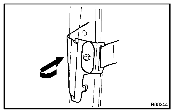 b. Remove the bracket cover protector by pulling it out in the direction indicated by arrow in the illustration.