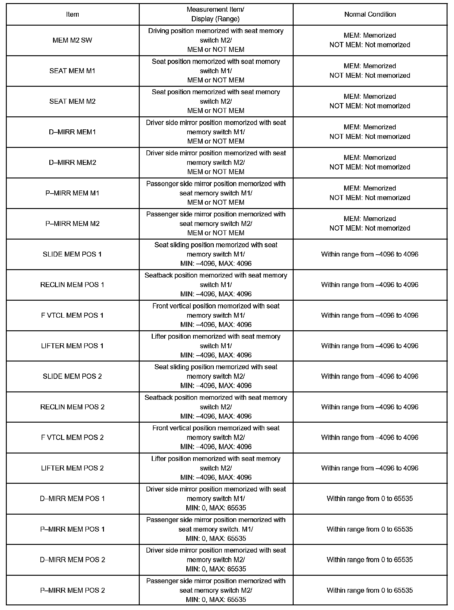 DATA LISTHINT: Using the DATA LIST displayed on the hand-held tester, you can read the value of the switch, sensor, etc. without parts removal. Reading the DATA LIST as the first step of troubleshooting is one way to shorten the labor time.