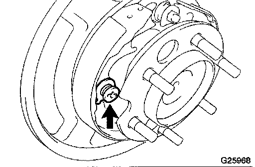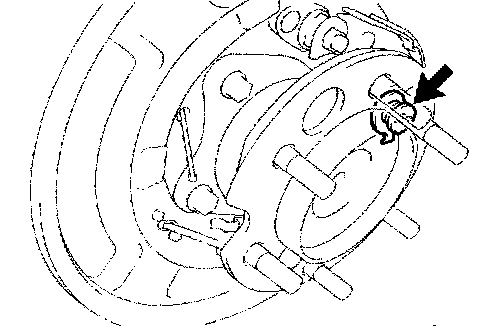 b. Remove the hole plug, turn the adjuster and expand the shoes until the disc locks.