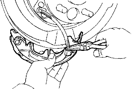 5. REMOVE PARKING BRAKE SHOE RETURN TENSION SPRING