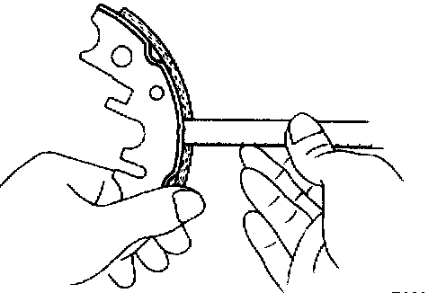 If the lining thickness is minimum or less, or if there is severe or uneven wear, replace the brake shoe.
