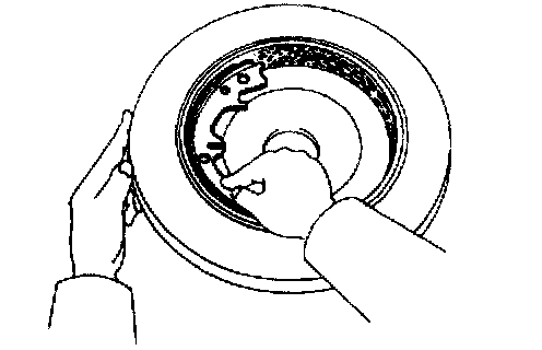 HINT: If the disc cannot be removed easily, turn the shoe adjuster until the wheel turns freely.